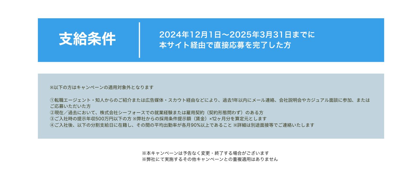 ※弊社からの採用条件提示額(賃金)×12ヶ月分を算定元とします